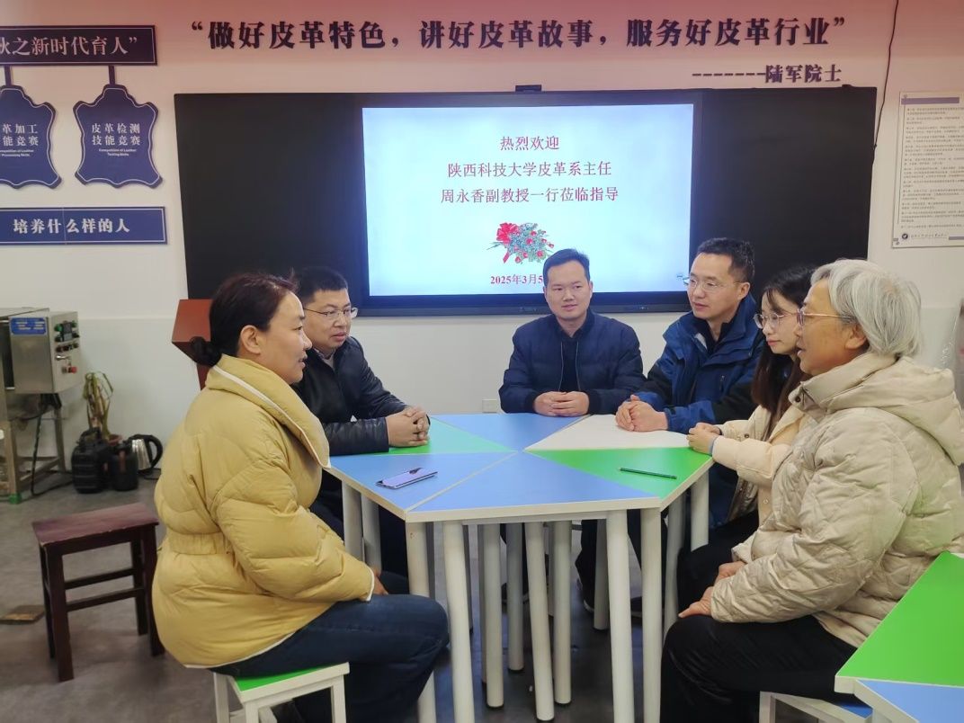 2025年3月5日,陕西科技大学皮革系主任周永香副教授访问我院轻化工程专业,双方围绕专业建设、人才培养、产学研合作等议题开展深入交流。轻化专业负责人罗建勋、主任洪新球、原系主任程凤侠等老师参加此次交流活动。