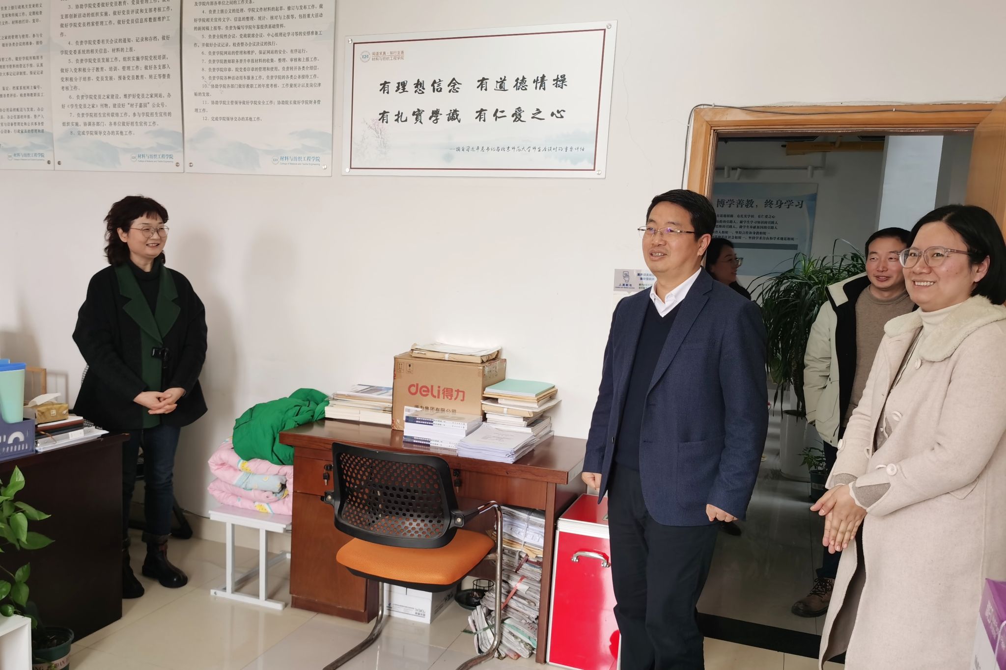 2月26日,新学期伊始,群p 党委委员、副校长於建明到材纺学院走访慰问教职工,为学院教职工送上诚挚祝福与殷切关怀,并调研指导新学期开学工作情况。