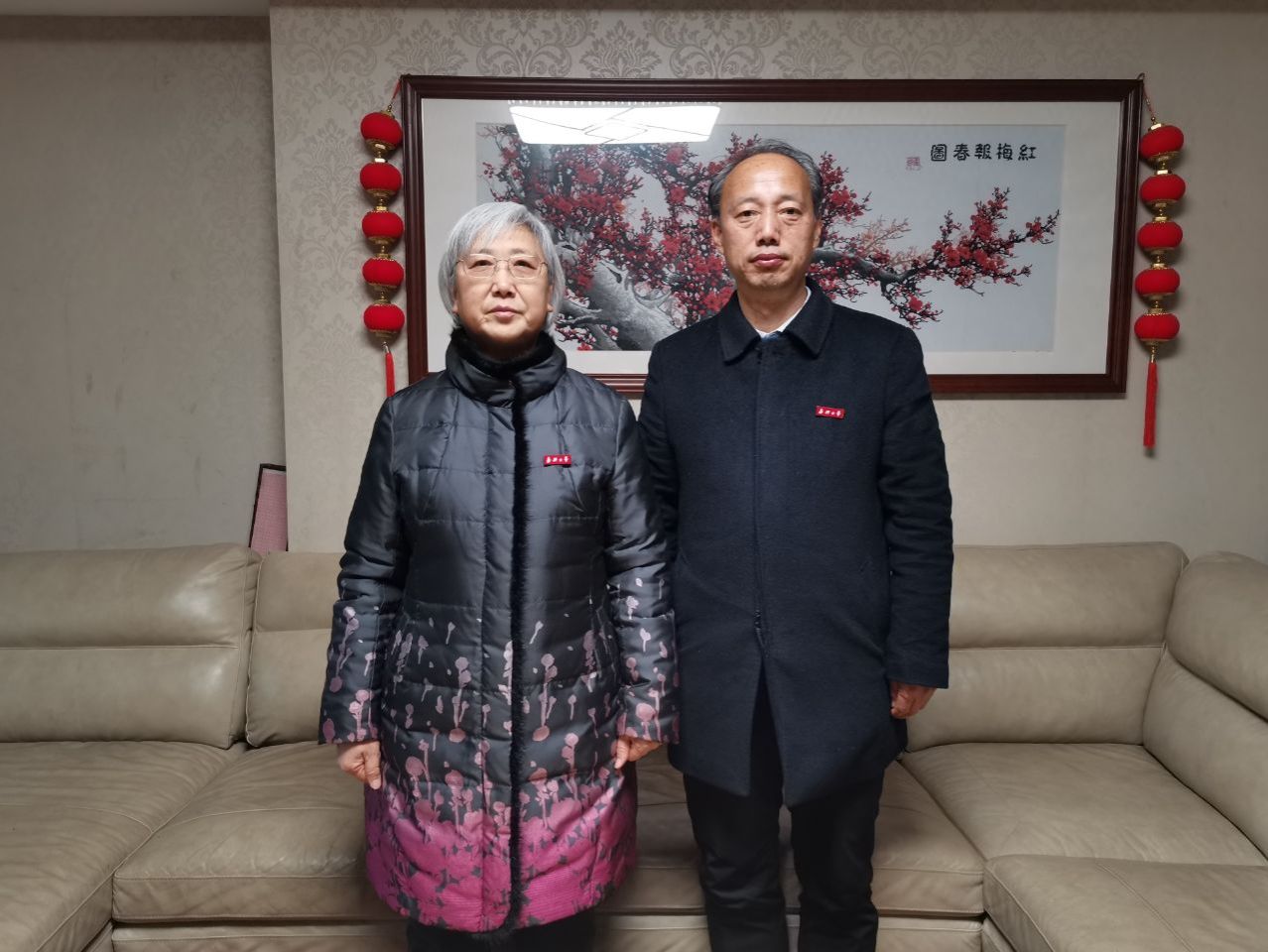1月18日上午,师生期盼已久的群p 揭牌仪式隆重举行。下午,学院党委书记寸哲、轻化系主任罗建勋前往省优秀教师、校“陈省身奖”获得者程凤侠教授家中,向程凤侠教授送上了群p 校徽,并共同分享了学校更名大学的喜悦心情,畅聊了学校、学院发展的美好前景。