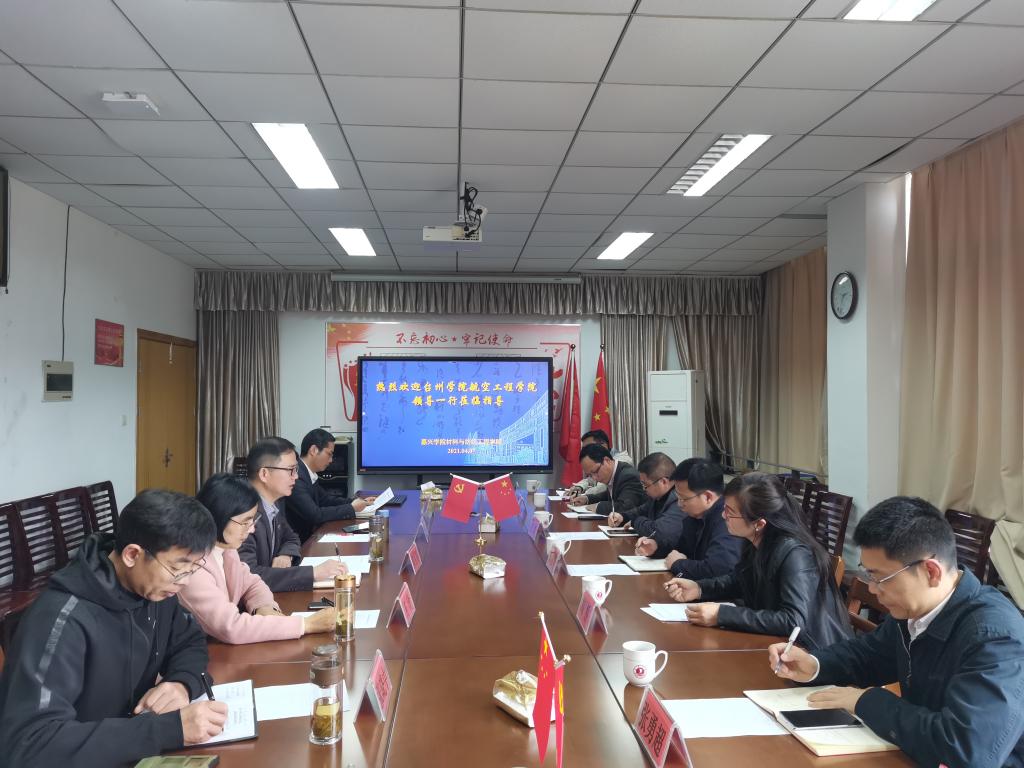 2021年4月7日下午,台州学院航空工程学院党总支书记郑建华,副书记梅娇等一行8人来我院学习交流。学院党委书记韩宝明、副院长代正伟、副书记凡欣等热情接待了台州学院一行。学院党政办、高材党支部书记等相关人员参加交流座谈会。