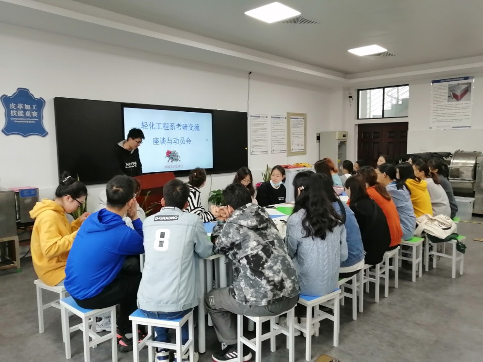 首先,轻化工程系李书卿老师对我院2017级考研学生取得的优异成绩给予了高度的肯定和祝贺,随后深入地分析了当下的考研形势,鼓励同学们积极考研。其次,2017级考研成功同学们分别从考研动力、心态、各门课程的学习技巧、考研过程中遇到的困难和解决方法等畅谈了自己的经验。最后,轻化18、19级考研学生代表针对自己考研准备中的问题和疑惑向学姐学长们进行了交流。同时轻化工程系每位老师也向同学们分享了自己对考研的认识和多年辅导考研的经验,并鼓励学生树立信心并认真准备。