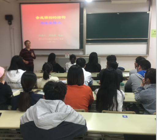 周华龙教授结合自身几十年的教学、研究和企业服务经验,向轻化工程专业师生介绍了“乙烯基共聚物树脂鞣剂”和“氨基树脂鞣剂”两类产品研究开发的设计理念和其性能特点。周教授深厚渊博的知识,诙谐幽默的语言,使我专业师生受益匪浅,对合成鞣剂的性能特点有了更深层次的认识。