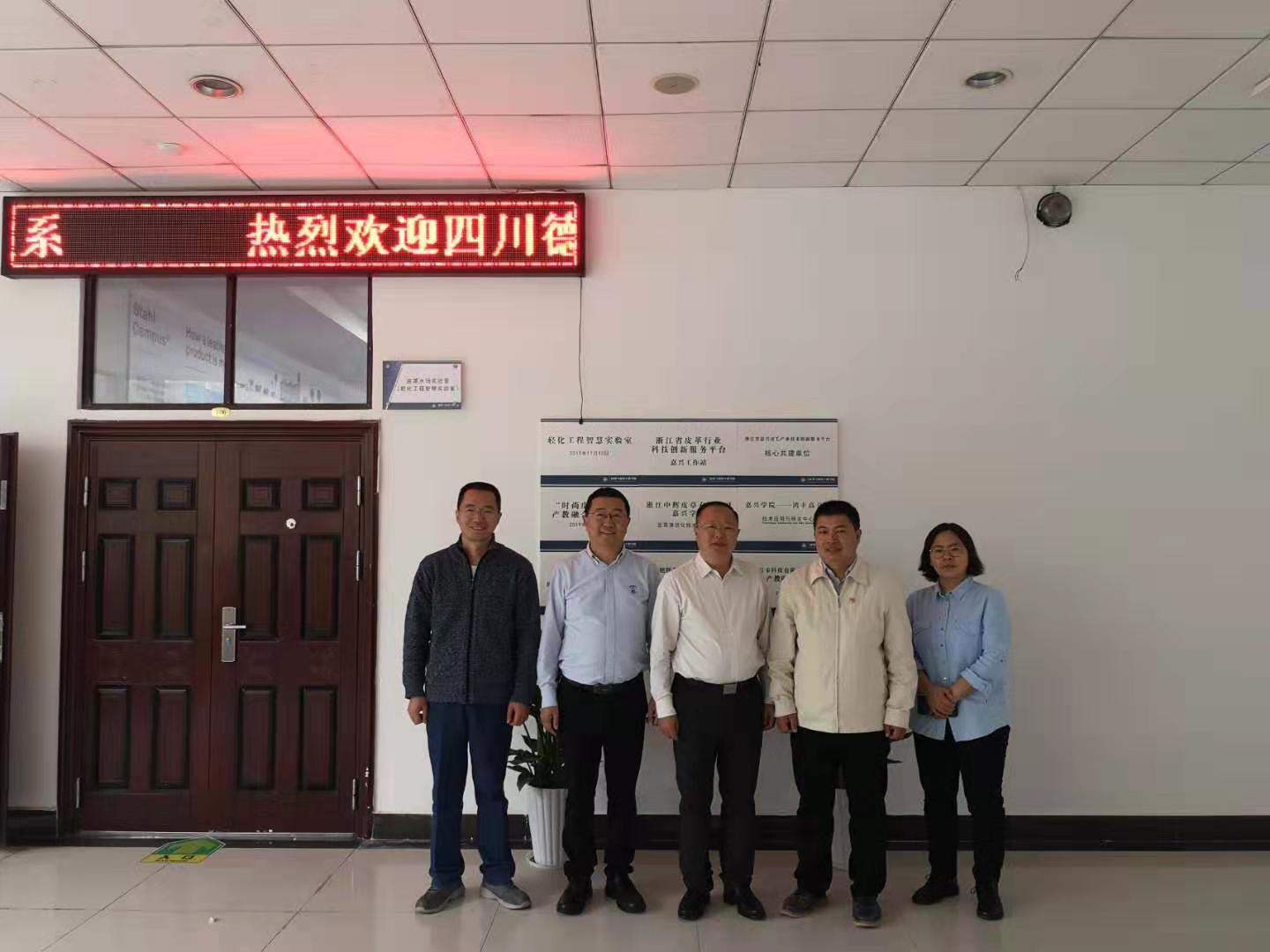 应材纺学院轻化工程专业邀请,国内知名皮革化学品生产龙头企业之一的四川德赛尔化工实业有限公司彭先成董事长、丁学斌副总经理于2020年11月17日上午访问材纺学院轻化工程系,并参观轻化工程智慧实验室。