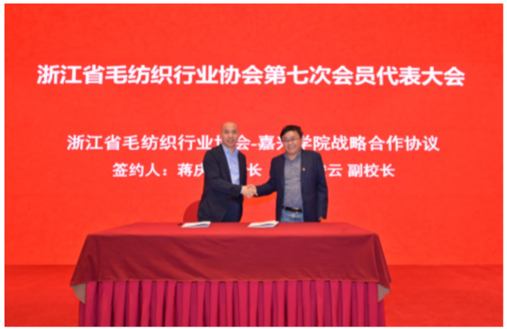 会上,浙江省毛纺织行业协会蒋庆云会长与嘉兴学院胡俊云副校长共同签署了《战略合作协议》。双方约定以浙江省毛纺织产业技术创新需求为基础,着力搭建产业领域协同创新、联合攻关、资源共享、共谋发展的平台,为建设科技强省、制造强省、生态强省提供有力支撑。