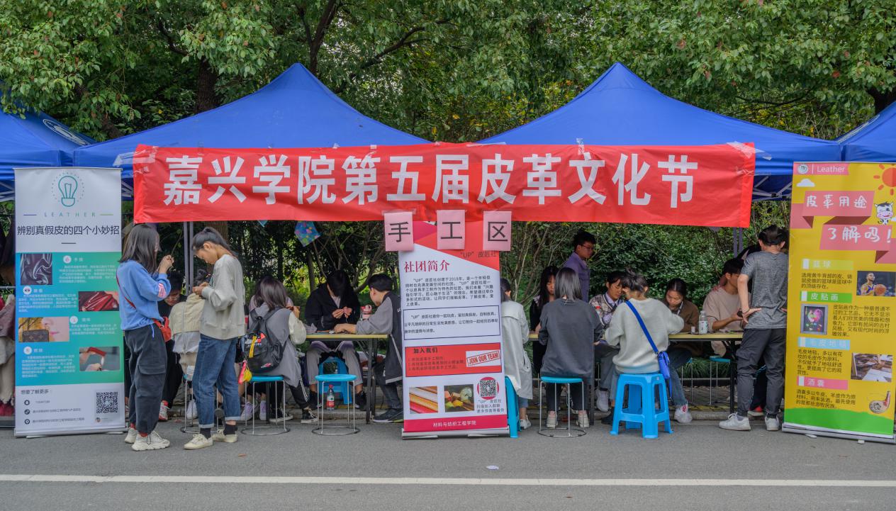 在喜迎我校办学106周年暨本科办学20周年之际,作为校庆重要活动内容之一,由我院轻化工程系和教师第三党支部主办、院团委协办的“嘉兴学院第五届皮革文化节”于10月18日在梁林校区第一食堂对面举行。本届皮革文化节由李书卿老师和轻化(实验)181班陈勇同学联袂策划,轻化工程系全体师生、学院团委干事及梁林校区其它专业的学生参与了该项活动。