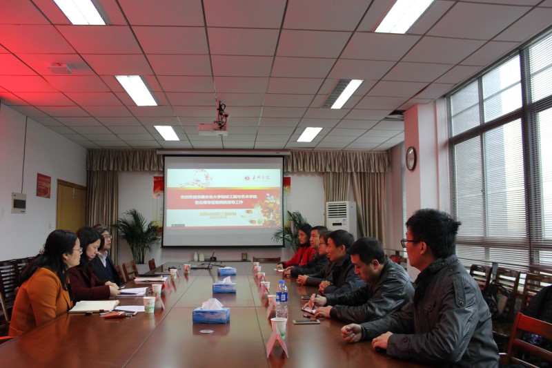 3月17日上午安徽农业大学轻纺工程与艺术学院党委书王冬平、院长杜兆芳一行六人来我院考察交流。我院党委书记陈立力、院长易洪雷、党委副书记黄芳芳等领导参加了调研交流会。