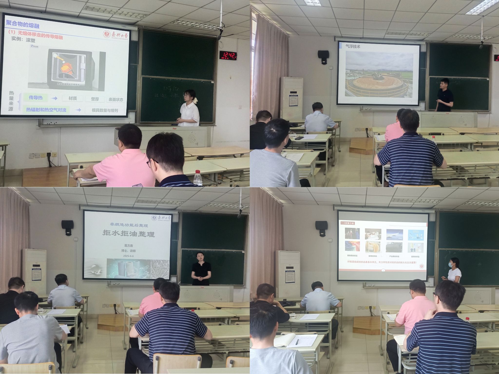 2025年6月6日中午,我院在崇礼楼506教室进行了青年教师助讲培养试讲考核。试讲考核专家小组由学院督导、系部教师代表等五位专家组成。2024年新入职教师葛方青、张天蒙、柯亚楠、易玉丹分别针对《非织造功能后整理——拒水拒油整理》《废水处理技术》《纺织材料学——纤维的拉伸力学性能》《聚合物的熔融》四个课程主题进行了说课和章节试讲。