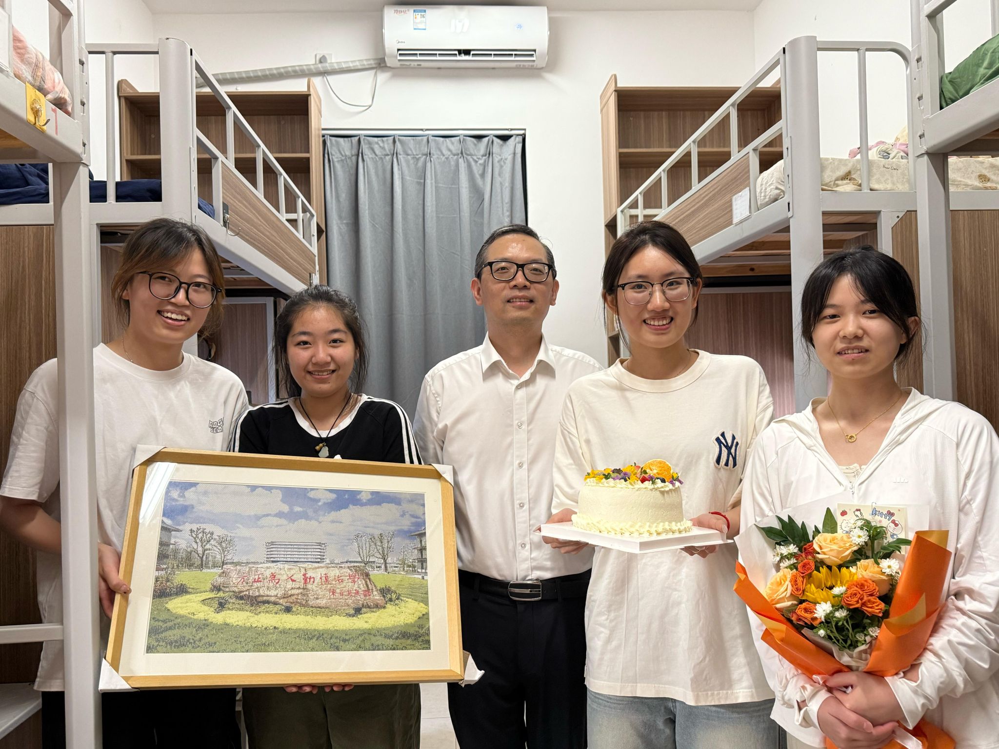 走访当天,恰逢一名新生的生日,学院特意准备了生日惊喜,用满满的仪式感为新生开启研究生生活的序幕。周校长代表学校向她致以生日的诚挚问候。“没想到刚入学就能收到这么特别的惊喜,学院和学校的关怀太暖心了!” 收到祝福的新生难掩激动之情,在场的同学们也纷纷送上掌声。这份突如其来的关怀,不仅让新生感受到了家一般的温暖,更彰显了学校对学生的用心呵护。