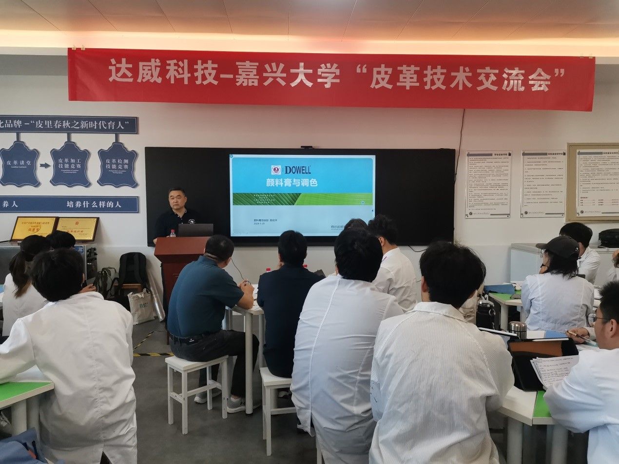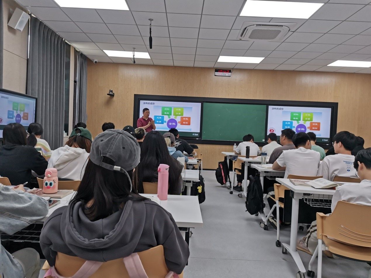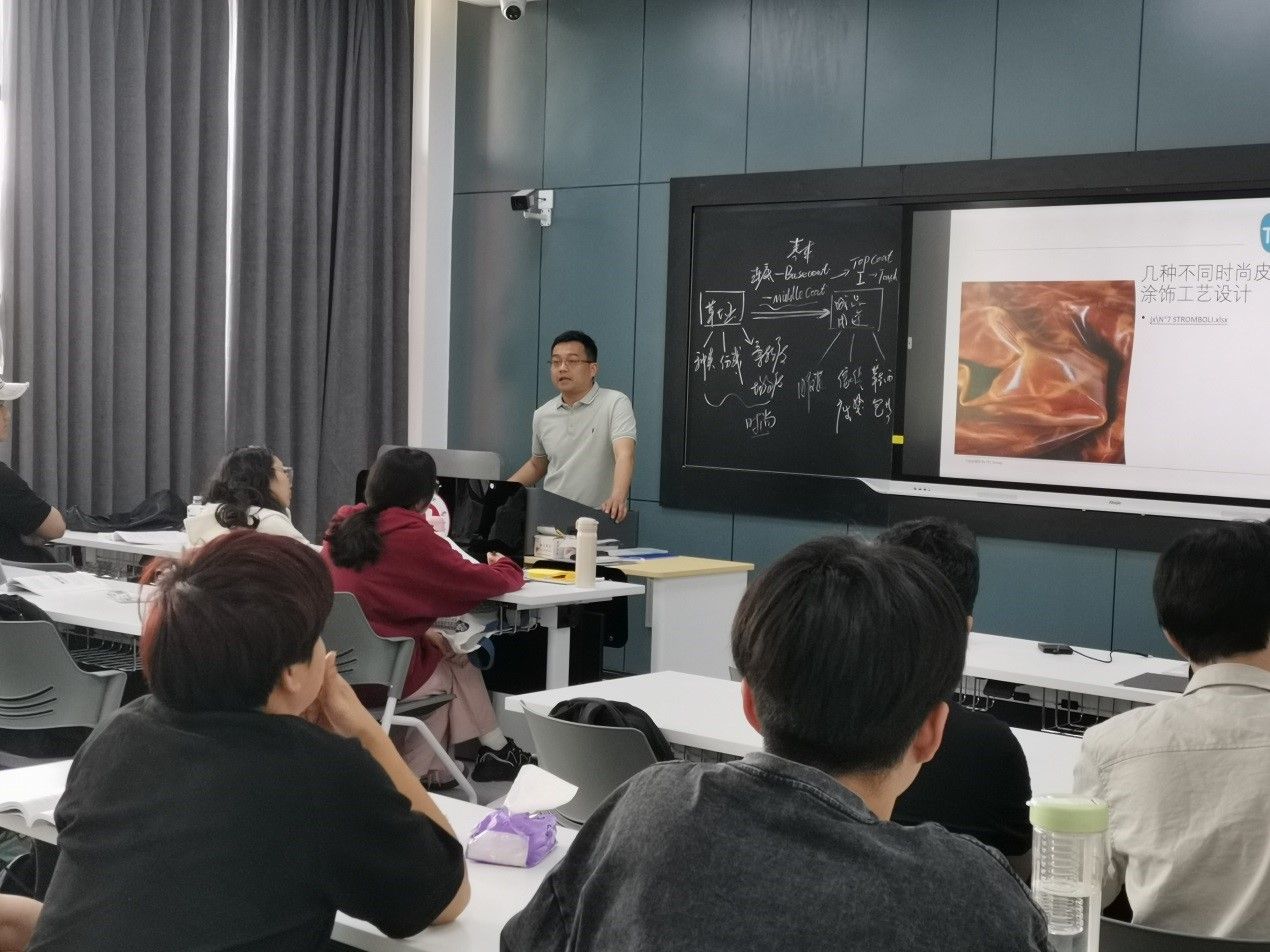 应我院轻化工程系邀请,德瑞科技有限公司何杰经理,斯塔尔精细涂料(苏州)有限公司郭祥经理、夏敏经理一行,四川达威科技股份有限公司谢衡副总经理一行分别先后于5月13日至5月31日访问我院轻化工程系并给轻化(实验)211班学生、轻化生态合成革班讲授“时尚皮革与合成革现代产业学院”的产业课程之《皮革整饰化学及工艺学》中“时尚皮革涂饰工艺设计”、《合成革工艺学》中的“合成革表面处理技术”、《皮革色彩调配基础及应用》中的“颜料膏与颜色”和《时尚合成革设计与制作》中的“合成革干法与表面处理技术”。系列活动由系主任罗建勋教授主持,马贺伟副教授、李书卿老师等轻化工程系教师全程参加。