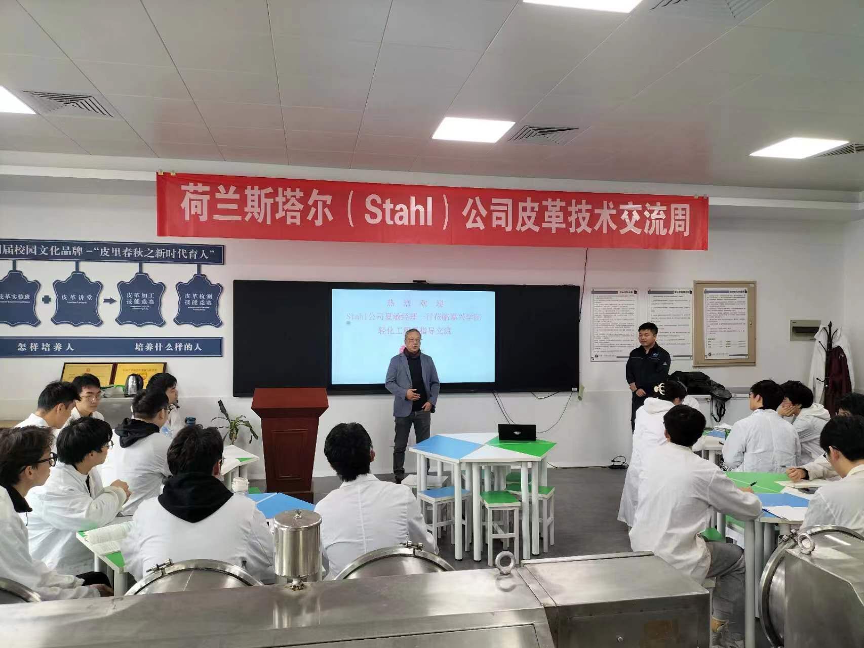 应我院轻化工程系邀请,荷兰STAHL公司夏敏经理、王毅工程师等及Smit&Zoon公司徐建平总经理、范观水工程师、唐省高工程师、肖丽萍工程师、泉风化工有限公司曾博辉等一行先后于11月6日至11日、11月13日至17日莅临我院轻化工程智慧实验室(产教融合校内基地)基于产业课程之“综合实验”而开展“皮革技术交流周”活动。轻化(实验)201班全体学生、轻化工程系教师参加了本次活动,活动由轻化工程系主任罗建勋教授、马贺伟副教授等负责。