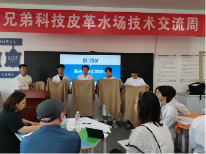 为了进一步深化和创新校企产教融合育人模式、做实“时尚皮革与合成革现代产业学院”,提高我院轻化工程系学生的理论与实践结合的能力,提升学生的专业技能,培养行业急需的应用型人才,轻化工程系以集中实践课程之《生产实习》为载体,并特邀请兄弟科技股份有限公司陈江江经理、钟莉经理、张一昕经理、杨其军工程师一行,于6月5日至6月9日来我院轻化工程智慧实验室举行“兄弟科技皮革水场技术交流周”。轻化(实验)201班全体学生及轻化工程系教师参加了该项活动,本次活动由李书卿老师、张彩丹老师负责。