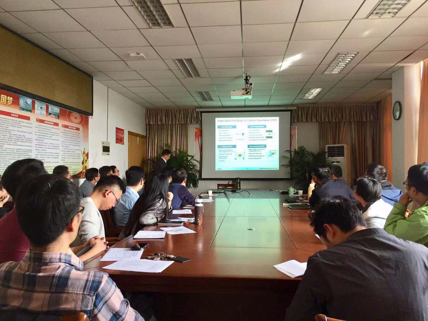 会上,洪淳亨院士从工作场地,组织架构,仪器设备,发展愿景等方面介绍了嘉兴学院纳米技术研究院,并就自己的研究内容和成果做了题为《Research and Development of Nanomaterials and Nanocomposites》的精彩报告。与会的各位教师也分别介绍了自己的研究内容和研究规划,并就相关的学术问题和洪院士展开了深入的探讨和交流。