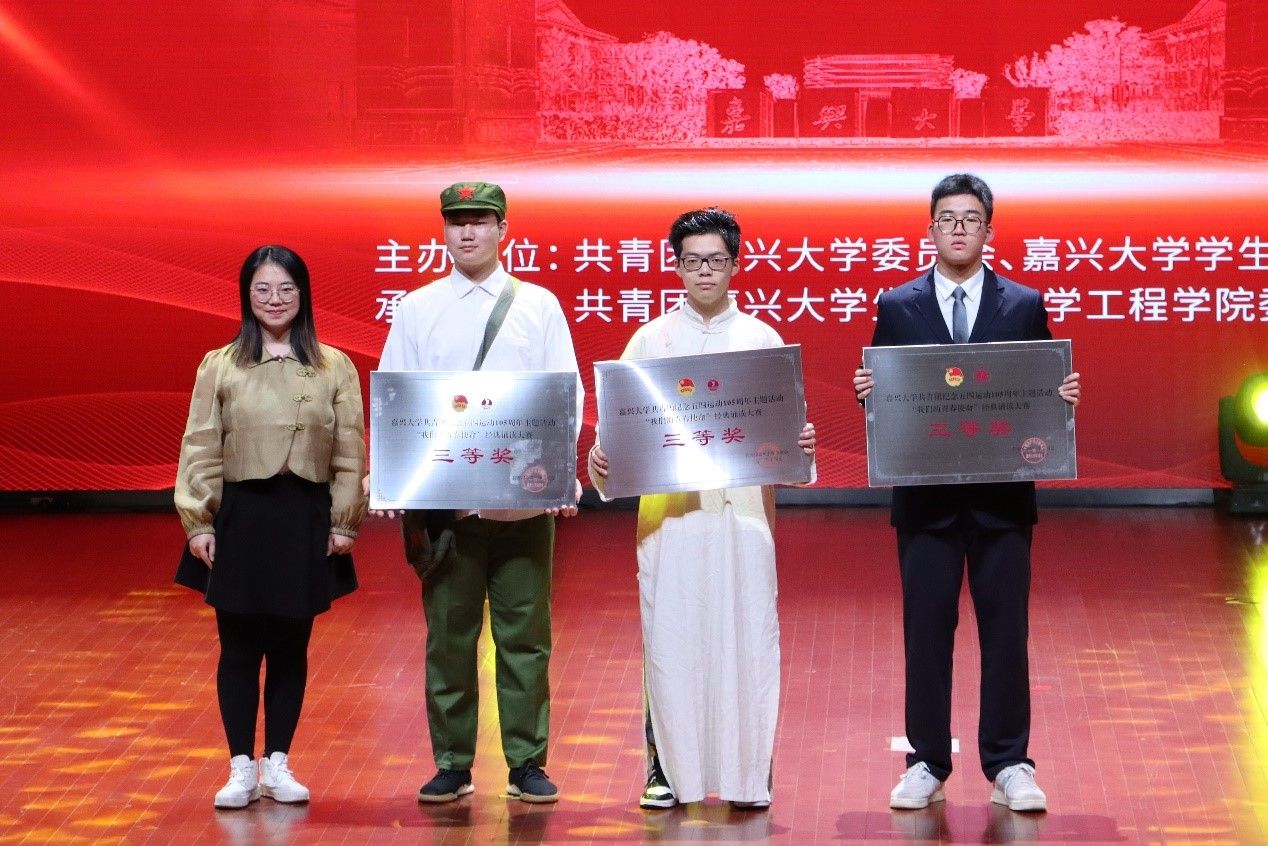 办学110周年,展现嘉大学子良好的精神风貌,4月20晚,由我校举办的纪念“五四”运动105周年主题活动“我们的青春使命”经典诵读大赛在梁林校区剧院举行。经过激烈角逐,我院参赛项目荣获大赛三等奖。