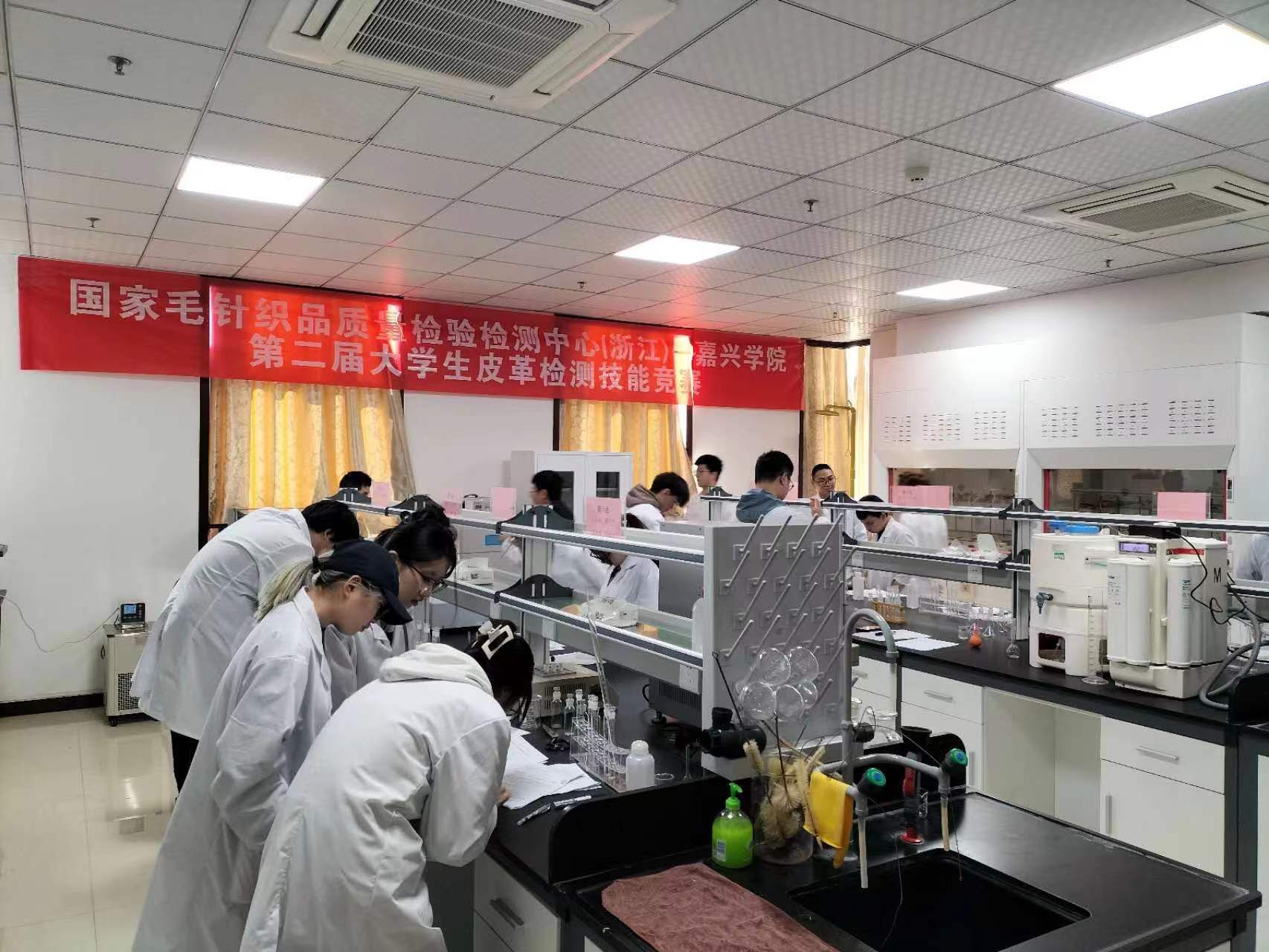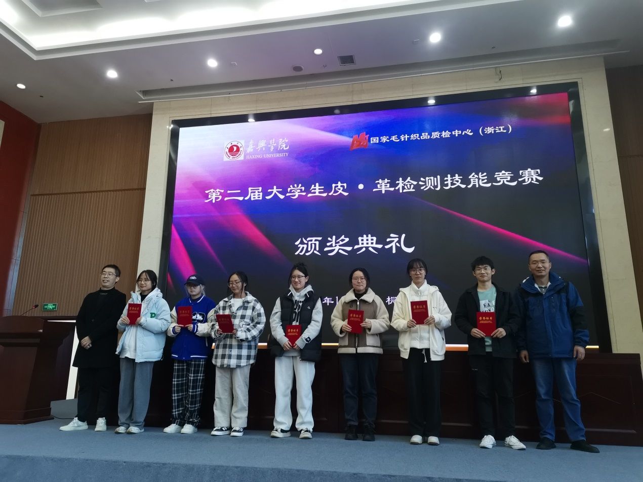 2023年11月17-18日,由嘉兴学院主办、我院与国家毛针织品质量检验检测中心(浙江)承办的我校第二届大学生皮·革检测技能竞赛在桐乡市国家毛针织品质量检验检测中心(浙江)成功举行。我院院长易洪雷教授、桐乡市市场监督管理局钱陈晨副书记、国家毛针织品质量检验检测中心(浙江)庄莉主任、袁绪政副主任、我校轻化工程系主任罗建勋教授及全体专任教师、轻化(实验)211班全体学生、轻化(专升本)231部分学生共29人参加了本次竞赛。