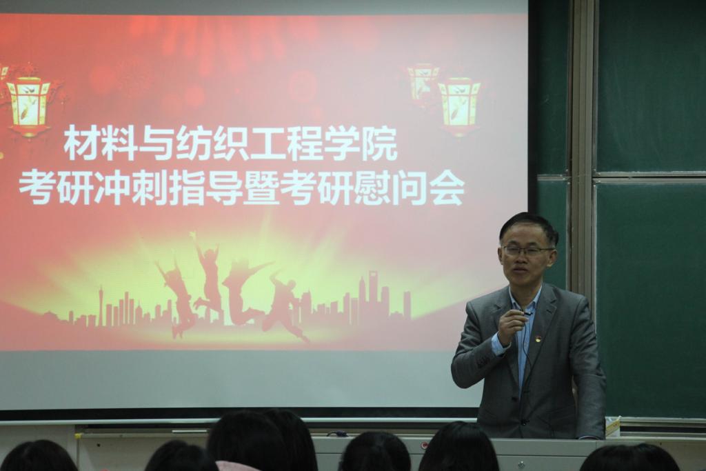 11月23日上午,材纺学院在闻道楼502教室召开2021届毕业生考研冲刺指导暨考研慰问会。材纺学院副院长黄立新、李海东、代正伟,各专业考研指导教师及100余位考研同学参加会议,会议由王晓莹主持。