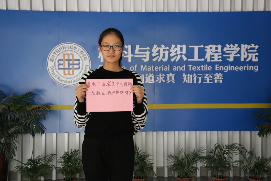 本次大会的主题是“不忘初心,牢记使命,高举中国特色社会主义伟大旗帜,决胜全面建成小康社会,夺取新时代中国特色社会主义伟大胜利,为实现中华民族伟大复兴的中国梦不懈奋斗。”习近平总书记带领大家回顾了党的十八大以来党和国家五年的成就和历史性变革,以及建党九十六年来,我党如何团结带领人民克服难关,创造奇迹,为了实现中华民族伟大复兴的历史使命而艰苦奋斗。接着,通过十四个“坚持”阐述了新时代坚持和发展中国特色社会主义的基本方略。我国正处于并将长期处于社会主义初级阶段,发展仍然是执政兴国的第一要务,而党的十九大到党的二十大之间的五年,更是第一个“一百年”与第二个“一百年”之间的过渡期,青年学生,作为祖国的未来,发展的后备军,正是能否实现全面建成小康社会并展开社会主义现代化建设新篇章的希望与关键。报告中指出新的发展理念,其中创新引领发展,科技强国和工匠精神缔造正与学院团委一直以来注重培养青年学生创新精神,应用能力和综合素质的理念相契合。文化是一个国家、一个民族的灵魂,一直以来,材纺学院团委志愿者活动和社会实践活动也是围绕“第一课堂”,着重传统文化的发掘,以专业知识为依托,建立品牌“非物质文化遗产亲近、传承与发展”品牌项目,一直走在拾遗的路上。