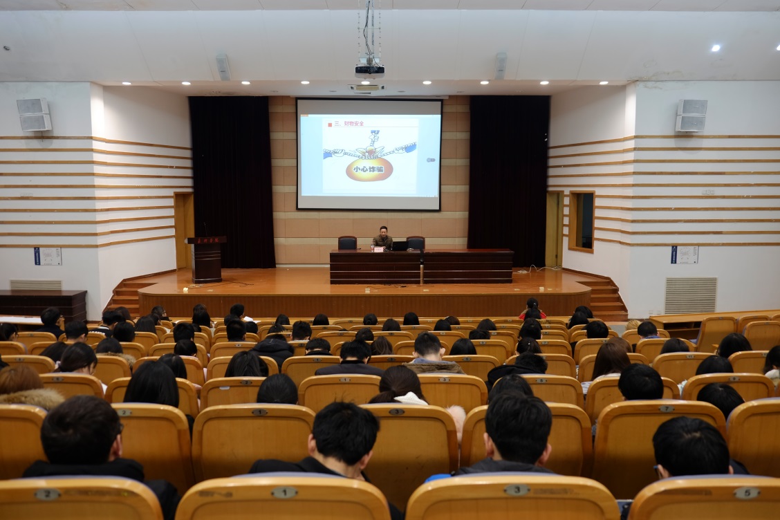 安全稳定一直是我院关注的话题,为提高我院学子安全意识和自我保护能力,群p 于2月23日下午14:00在TCL报告厅举行了大学生安全教育讲座。本次活动邀请了嘉兴学院安全保卫处副处长王晓兵作为主讲,学院各班主要班委和寝室长200余人参与讲座。