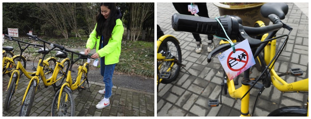 团委学生会组织开展了“让共享单车更为便捷”的志愿服务活动。