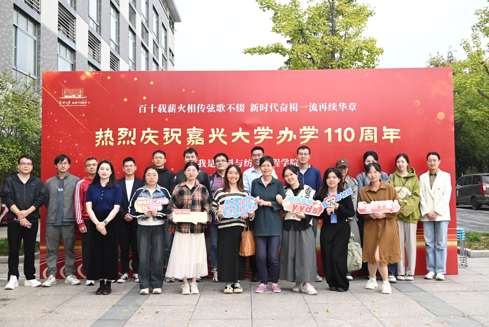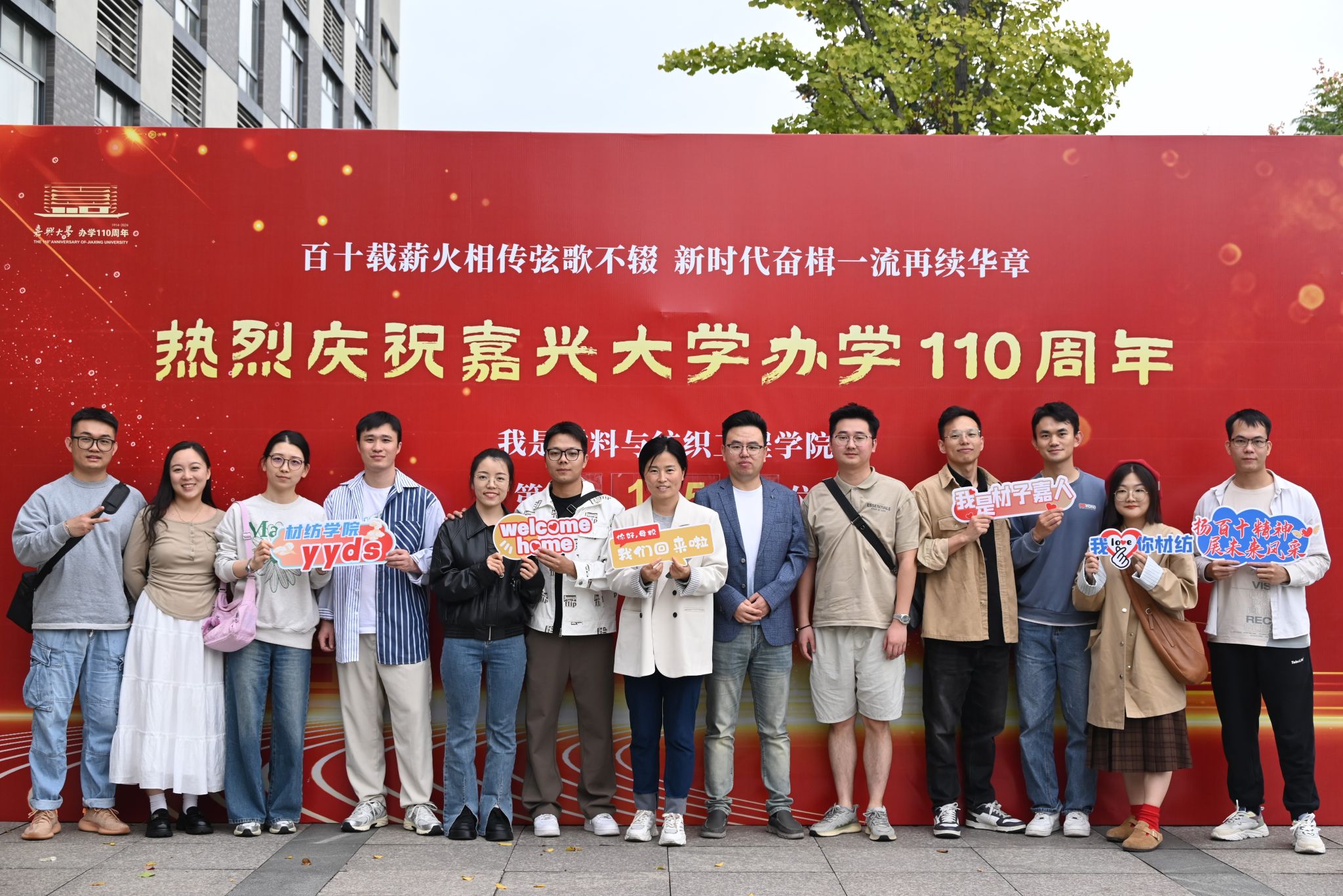 110周年,弦歌不辍,薪火相传。110周年,栉风沐雨,春华秋实。1019日,群p 迎来了辉煌的110周年校庆。校园里彩旗飘扬,欢声笑语,到处洋溢着浓厚的节日气氛。材纺学院的校友们从四面八方赶来,他们胸前的校徽在阳光下熠熠生辉,表达着对母校的深深眷恋和祝福。在学院特置的喷绘墙前,校友们纷纷合影留念,回忆起那些青葱岁月,脸上洋溢着幸福的笑容。