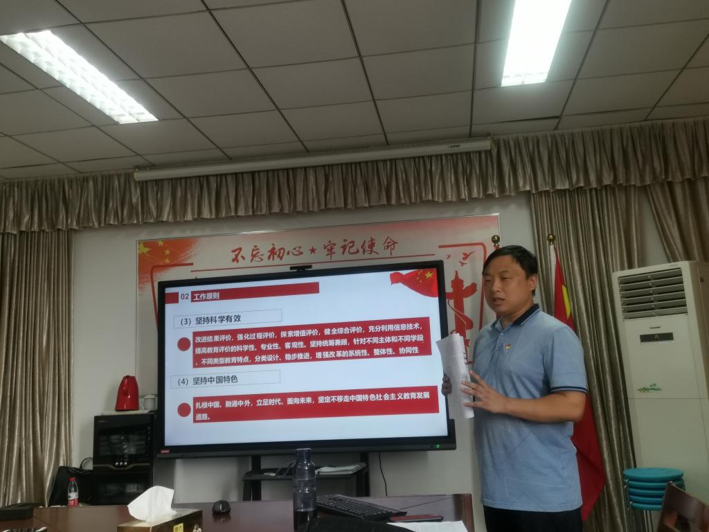 6月21日下午,学院党委理论中心组在院会议室召开《深化新时代教育评价改革总体方案》专题学习扩大会议及学校安全和保密工作会议精神学习会。学院党委委员、各党支部书记及委员、各系(办公室、实验中心)负责人参加了会议,院党委书记韩宝明主持学习会,代正伟副院长作《深化新时代教育评价改革总体方案》专题学习主题发言。