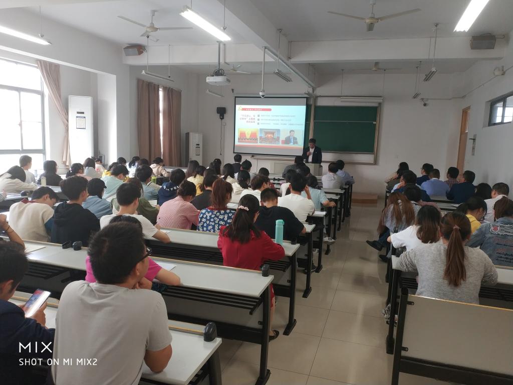 1024日下午,我院党委书记易洪雷面向全体师生党员作题为《知史明责不忘初心,牢记使命担当作为》的主题教育专题党课。