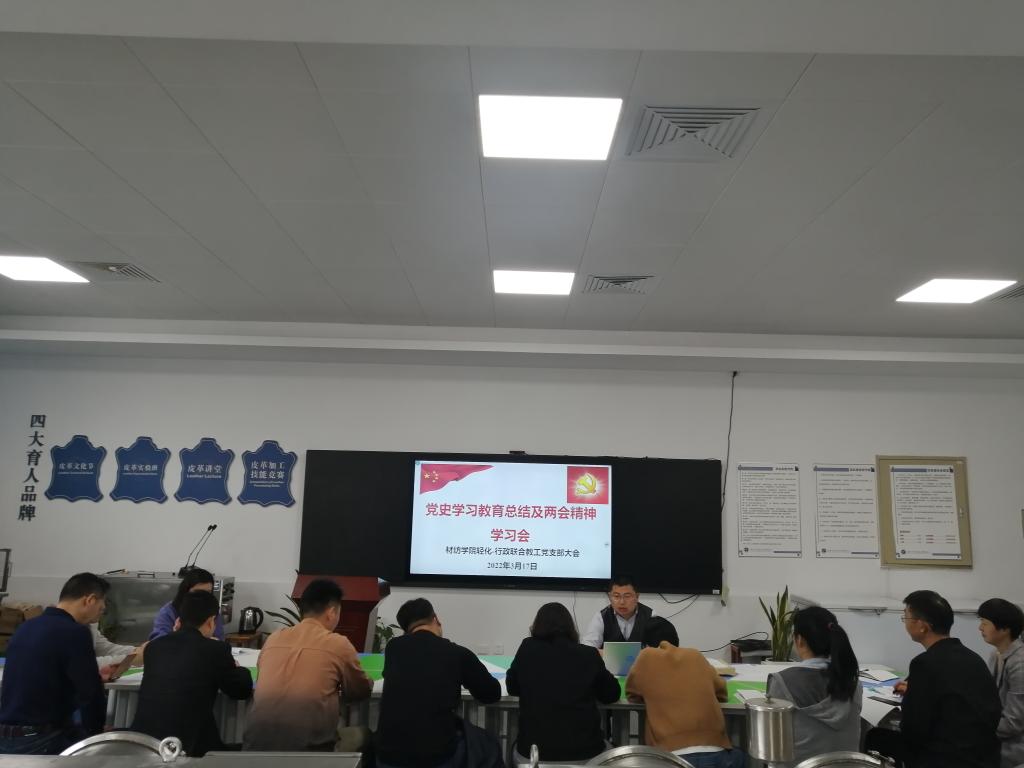 3月17日,我院轻化-行政联合党支部在轻化工程智慧实验室召开党史学习教育总结及两会精神学习会。支部全体党员参加了会议,部分非党员教工也列席了会议。会议由党支部书记罗建勋主持。