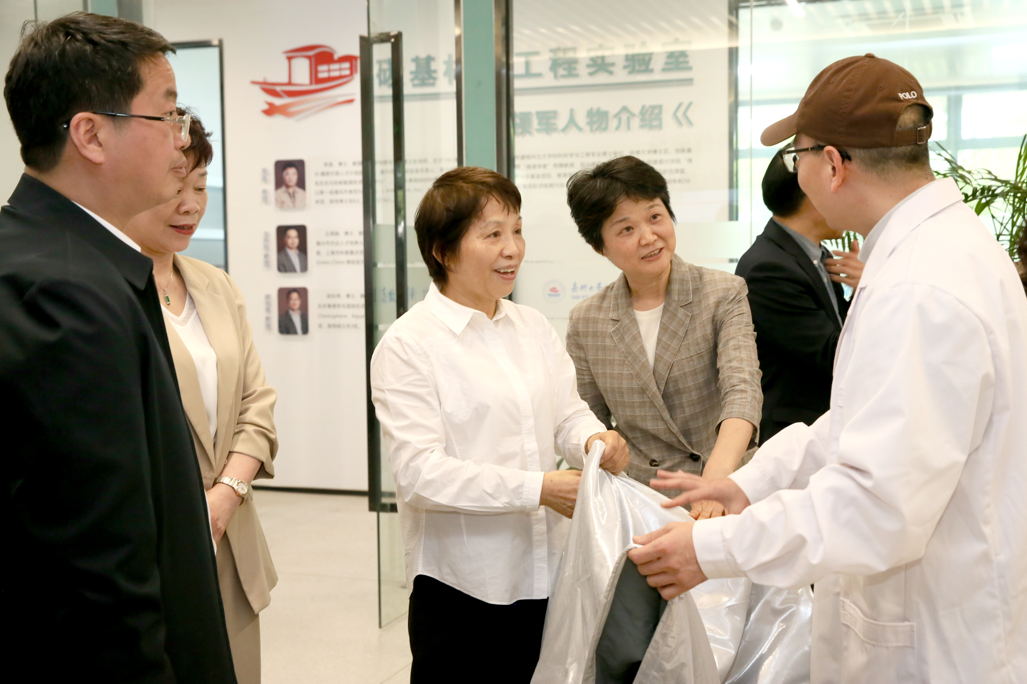 嘉兴市人大常委会主任高玲慧一行赴群p G60科创走廊产业与创新研究院考察调研,纺织电子科研团队负责人马辉教授向高玲慧主任汇报了团队研发的反光织物成果,引发高度关注。